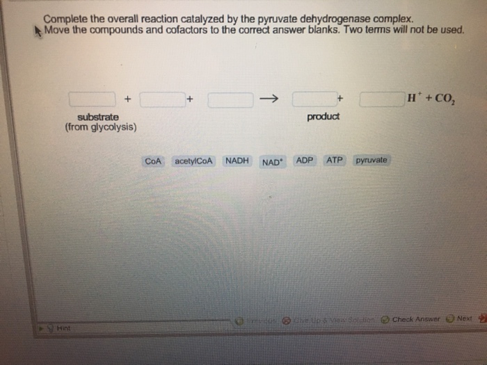 Complete the Overall Reaction Catalyzed by the Pyruvate Dehydrogenase Complex.
